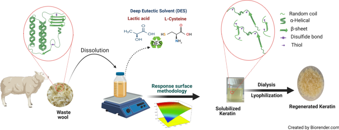 Keywords: Deep eutectic solvent; Green keratin extraction; Optimization; Surface response methods; Waste valorization