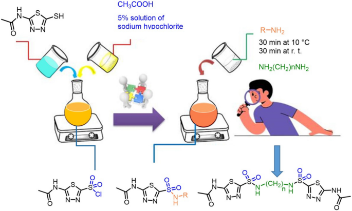 Keywords: Acetazolamide; Sulfonyl chloride; Sulfonamide; Sodium hypochlorite; Thiadiazol