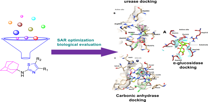 Synthesis of small size adamantane-linked aminothiazoles as potent inhibitors of urease, α-glucosidase and carbonic anhydrase and their molecular docking studies