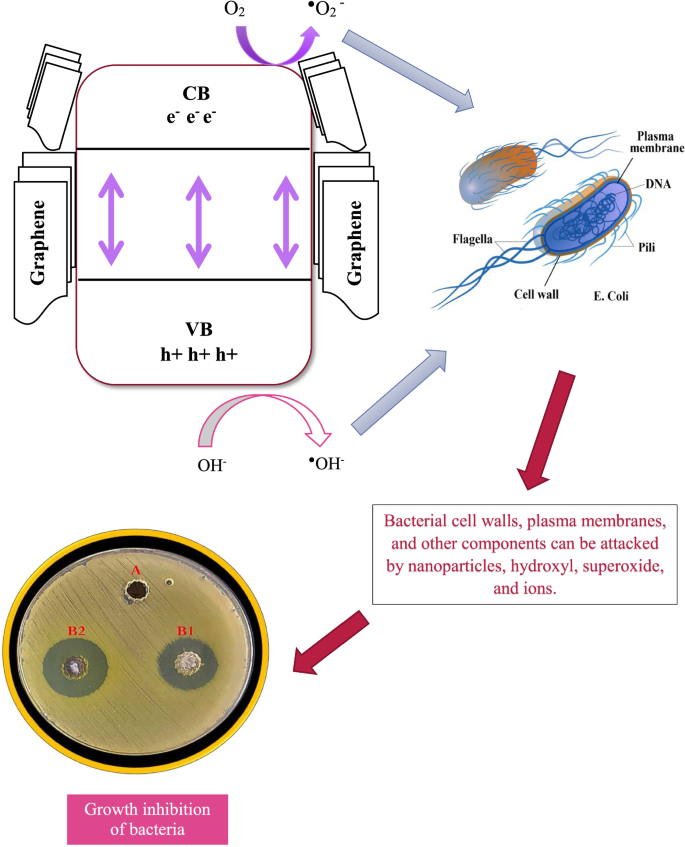 In this work, a successful method for preparing TiO2/graphene nanostructures is presented by combining the hydrothermal method with the Nd-YAG laser. The results of XRD confirmed the presence of the anatase phase of TiO2 and the presence of two peaks that belong to graphene. FESEM results indicate the presence of nanostructures like “nanosheets” with clusters of nanoparticles. In high agreement with the XRD results, EDS results confirmed the presence of energy peaks for all selected elements. The zeta potential results confirm that the sample colloids have a negative electrical charge on their surface, with a zeta potential of around (– 16.7) mV. The anti-bacteria results indicate the ability of the TiO2/graphene nanostructure to highly inhibit Staphylococcus aureus and Escherichia coli bacteria with inhibition zones of 36 and 29 mm, respectively.