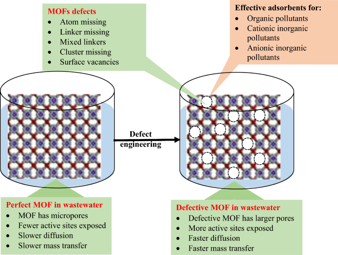Advances in the application of defect-engineered metal–organic frameworks as adsorbents during the decontamination of wastewater