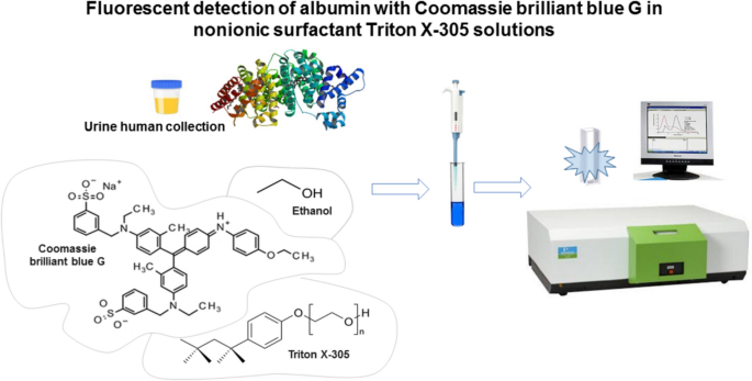 Fluorescent detection of albumin with Coomassie brilliant blue G in nonionic surfactant Triton X-305 solutions