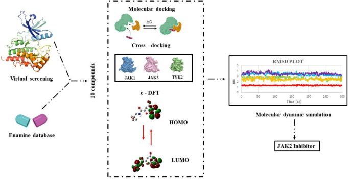 Keywords: Computational Chemistry; Molecular Modelling; Molecular Target Identification; Protein-Ligand Interactions; Small Molecules; Virtual Drug Screening; Colon cancer; JAK2; Virtual screening; Molecular docking; DFT; MD simulation