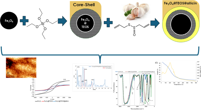 Synthesis and characterization of core–shell nanoparticles (Fe3O4@TEOS) biofunctionalized with allicin from Allium sativum optimized by a Box–Behnken design