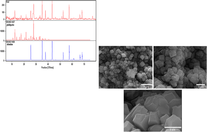 Abstract: Phillipsite zeolite particles and membranes were successfully synthesized at different operational and environmental conditions. Using an L9 orthogonal array of the Taguchi method, effects of experimental condition—synthesis temperature (130–150 °C), synthesis time (2–3 days), number of synthesized layers (1–3), and seeding suspension percentage—for membrane preparation with respect to CO2/CH4 ideal selectivity were investigated. The results showed that the ideal selectivity was improved up to 4.20 from 1.15 by increasing the number of synthesized layers, synthesis temperature, and seed solution concentration and by decreasing synthesis time. Moreover, the best synthesis conditions were defined based on the Taguchi method results and the membrane was synthesized with the highest ideal selectivity which was around 4.40. In addition, it was shown that T zeolite is formed beside PHI zeolite at low temperature even with long synthesis time.